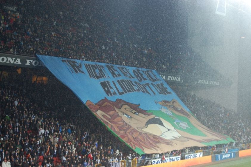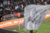 schön auch die zwei riesigen Blockfahnen zu Beginn der Partie.